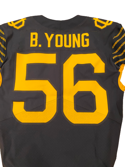 Game worn throwback "Webfoots" jersey from October 8, 2016 when Oregon played #5 Washington.