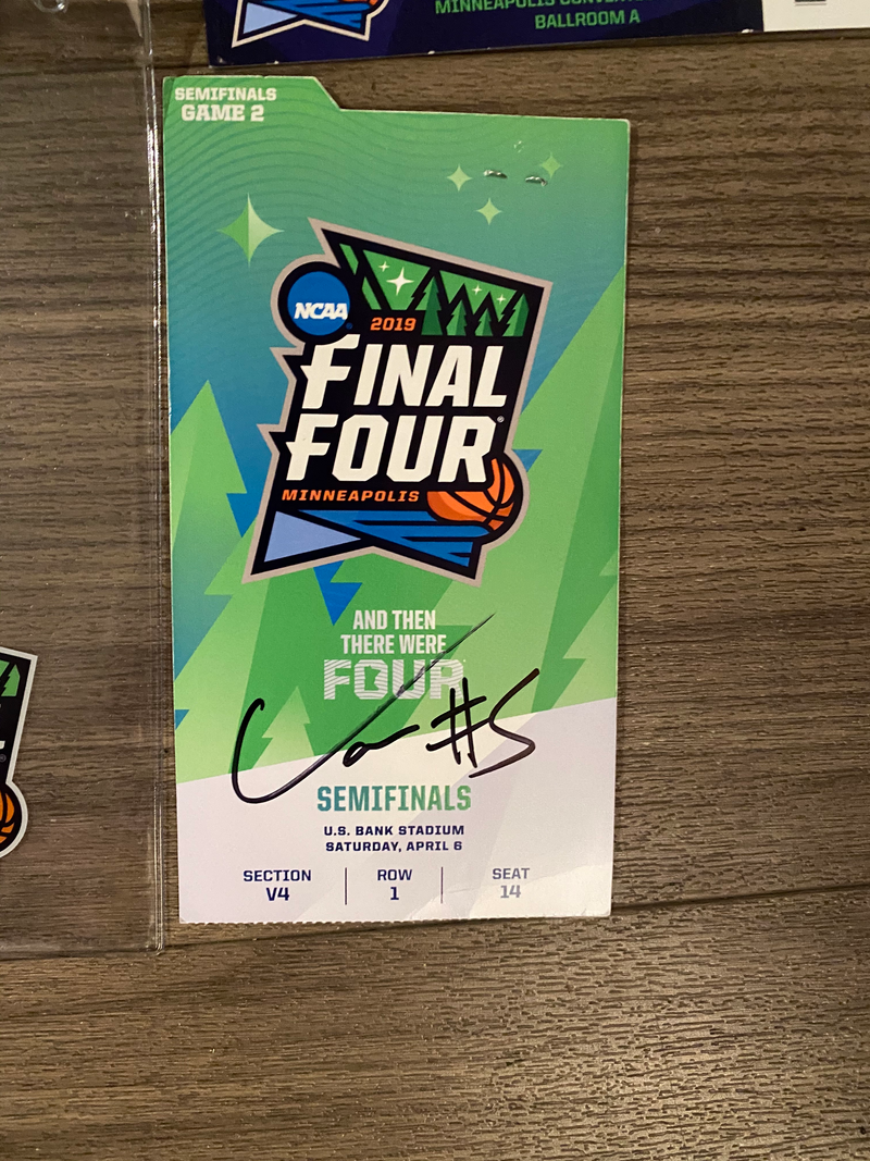 This ticket set is from the 2019 Final Four, which was held in Minneapolis. Cassius was an integral part of the team's success and is one of the greatest players in program history.