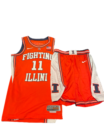 Ayo Dosunmu Illinois Basketball SIGNED 2018-2019 (FRESHMAN YEAR) Game Worn Uniform Set (BIG TEN TOURNAMENT)