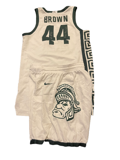Gabe Brown Michigan State Basketball 2021-2022 SIGNED & INSCRIBED GAME WORN Uniform Set (Jersey & Shorts) - Photo Matched