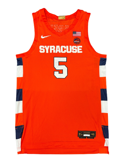 A gorgeous piece of Orange history! These road jerseys were first introduced for the 2019 season, as NIKE included the gold-hued tag on jerseys for programs that have won a NCAA Championship. Syracuse was 1 of 9 schools to receive this honor, having won their championship in 2003, defeating Kansas 81-78 in an all time classic game.