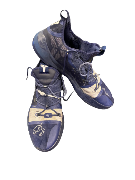 These shoes were worn many times throughout Kofi's career at Illinois, as reflected in the condition of the shoes, which truly show usage!
