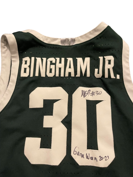 Marcus Bingham Jr. Michigan State Basketball 2020-2021 SIGNED & INSCRIBED Game Worn Jersey (Size 46) - Big Ten Tournament Photo Matched