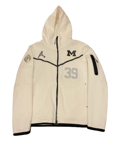 Matt Torey Michigan Football Player Exclusive College Football Playoff White Nike Tech Fleece Jacket with Number (Size L)