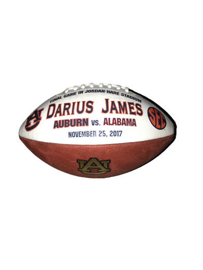 This official game football was presented to Darius James after his final game in Jordan-Hare stadium, which Auburn beat Alabama 26-14