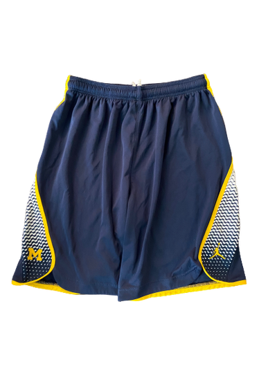 These practice shorts served as the primary uniform for the Michigan Wolverines during the 2017 B1G 10 Tournament. While departing from Ann Arbor to Washington D.C., the Michigan team/plane faced inclement weather which caused them to slide off the runway. The main uniform sets were stuck on the plane so the team had to utilize their practice shorts. The challenging start to the trip only strengthened the bond between the team as they captured the B1G 10 Championship. These shorts will always serve as a unique part of history. Derrick Walton Jr. was an integral part of the teams success and was named the tournament’s Most Outstanding Player.