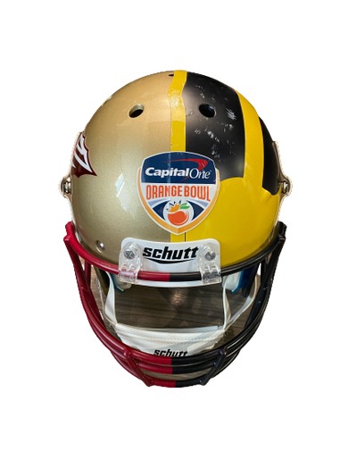 This item was given to the participants in the 2016 Orange Bowl between the Michigan Wolverines and the Florida State Seminoles. It is truly a unique item and the split helmet was given to the players as a gift.