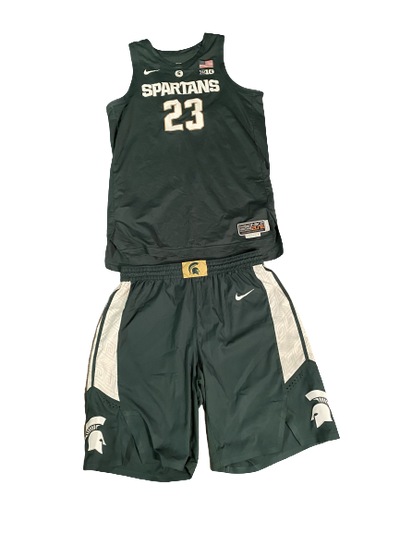Xavier Tillman Michigan State 2018-2019 Game Worn Uniform Set - Elite 8 (Jersey & Shorts) ELITE 8 - Photo Matched