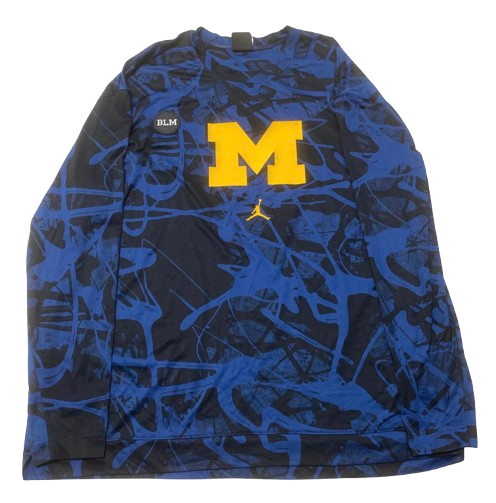 Hunter Dickinson Michigan Basketball Player Exclusive Long Sleeve Pre-Game Warm-Up Shooting Shirt with BLM Patch (Size XXLT)