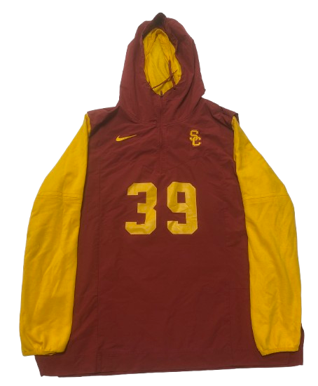 Garrett Pomerantz USC Football Player Exclusive Pre-Game Warm-Up Quarter-Zip Jacket with #39 (Size XL)